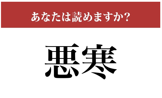 【難読漢字】「悪寒」って読めますか?「あっかん」ではありません